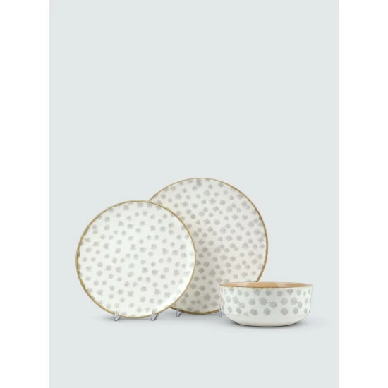 The Earth 3-piece Place Setting combines mid-century neutral tones with an simple silhouette in a playful handpainted pattern.