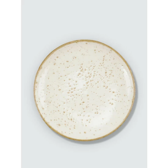 The Earth Cocktail Plate combines mid-century neutral tones with an angled silhouette in a playful handpainted pattern.
