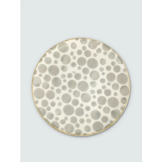 The Earth Salad Plate combines mid-century neutral tones with an simple silhouette in a playful handpainted pattern.
