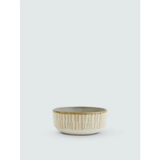 The Earth Small Bowl combines mid-century neutral tones with an angled silhouette in a playful handpainted pattern.